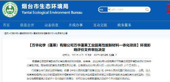 总投资231亿!万华化学计划在蓬莱建设高性能新材料一体化项目