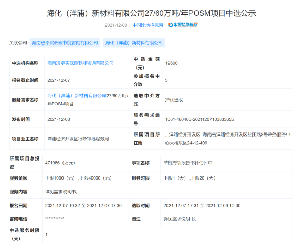 海南计划建设27/60万吨环氧丙烷/苯乙烯项目!