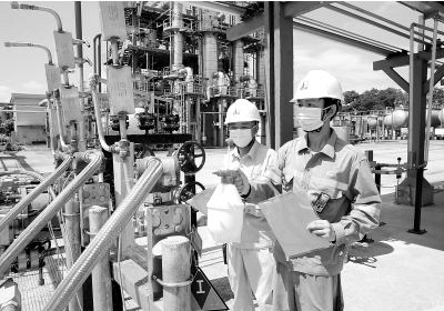 7月14日,操作人员对高纯加氢站设备进行安全检查