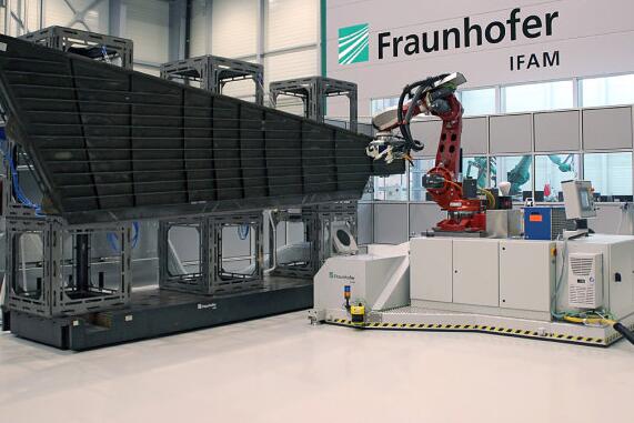 当代民航客机如空客飞机A350XWB很多选用了碳纤维提升复合材料,其飞机翼、汽车尾翼及其绝大多数外壳共约53%的构件都由复合材料生产制造。殊不知,大中型碳纤维复合材料构件的生产制造依然十分用时且成本费持续上升。因此,弗劳恩霍夫生产技术和应用材料研究室以及工业领域的合作方着眼于开发设计更高效率的生产制造和生产加工解决方法,比如用以生产加工大中型零部件的平行面组装机器人,用以轮廊切削的搬运机器人,还包含用以无脱膜剂生产制造碳纤维复合材料大中型零部件的低温等离子涂敷的离型膜这些。