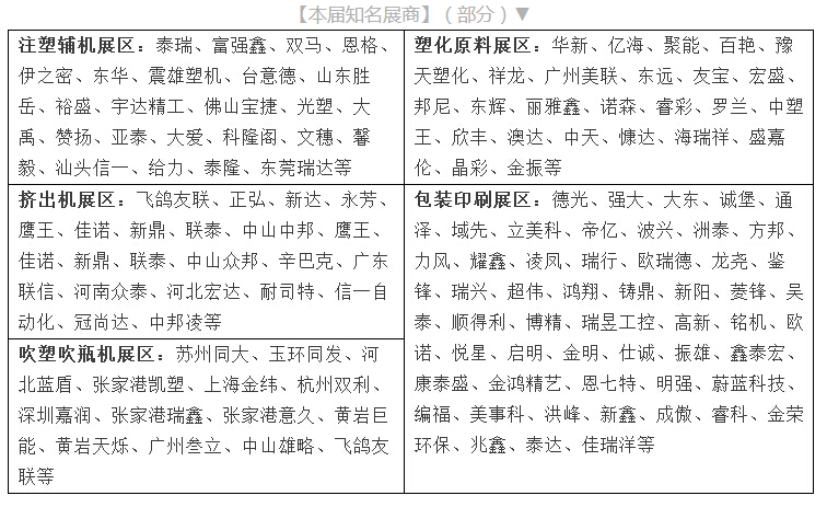 主办方在往届生基本上,除开将注塑工艺展区、自动化技术高新科技展区、挤压机械设备展区、注塑机械设备展区、塑料包装机械设备展区、化工厂及原料展区、作用塑料母粒展区等变大外,增加輔助机器设备检测展区、磨具展区、复合型及特殊原材料展区、塑料薄膜技术性展区、收购 再生科技展区、塑料装饰建材展区。以健全全部塑料全产业链,考虑中下游塑料客户各层面要求。