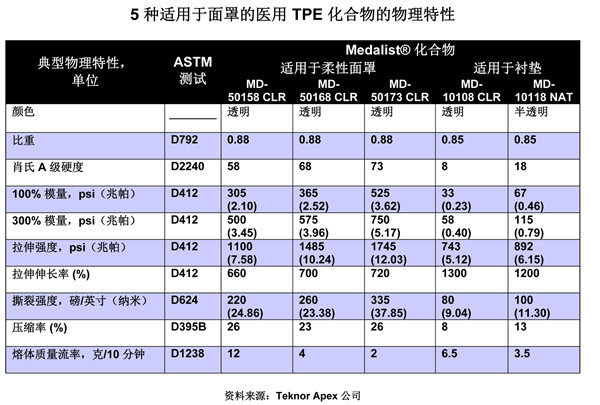Teknor Apex 的 TPE 业务部管控商品高級市场部经理 Ross van Royen 强调:“愈来愈多的医疗器械 OEM 生产商挑选 Medalist 做为 PVC 和硅酮的代替品用以面罩生产制造。在柔性面罩主要用途,Medalist MD-50100 系列产品的清晰度和柔韧度与 PVC 同样,但抗形变工作能力更强,可以完成包裝和存储的改善。这种原材料还可作为比硅酮面罩更经济发展的代替品。”