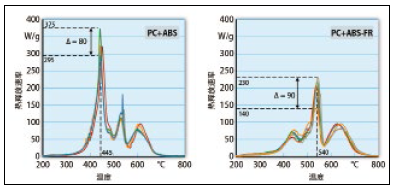 图6 MCC的精确测量結果:非阻燃性PC ABS(左)和阻燃性PC ABS(右)(来源于:LKT)