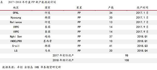 16年外盘投产50万吨级,2017年外盘投产98万吨级,预估2018外盘投产108万吨级,近些年外盘处在持续的低生产能力推广期,造成近些年外盘 PP 价钱持续上涨,内外盘也长期保持下跌水准,乃至出口盈利开启时,分阶段内盘PP以原材料或制成品的方法出口。PP端进口底位,出口再次提升的趋势预估在 2018依然会持续。