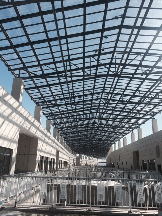 凭着聚碳酸酯板材在耐老化和轻巧性上的非凡优点,科思创在辽宁海城义乌小商品城室外楼梯项目建设上获得了主要表现。模复制®12mm全透明实芯板材则凭着非常高的风雪交加载荷工作能力,强有力承担室外楼梯所在的北方地区地区极冻自然环境。此外,因其企业总面积净重仅为空心夹层玻璃的32%,进而进一步提高了安裝高效率,节约了钢架构造,确保了全部新项目的实际效果规定。