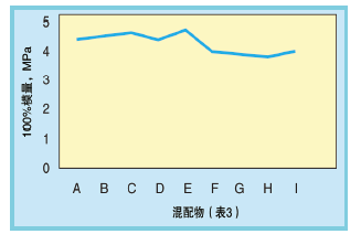 图3说明混配物1~4的强度值。图4说明混配物1~4的拉伸强度,图5说明混配物1~4的伸展值。