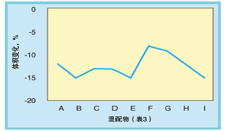 在然料C曝露实验中,混配物2主要表现出基本上不会改变的容积转变,该混配物含40分量的NBR。