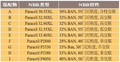 表3、混配物中的NBR颗粒种类