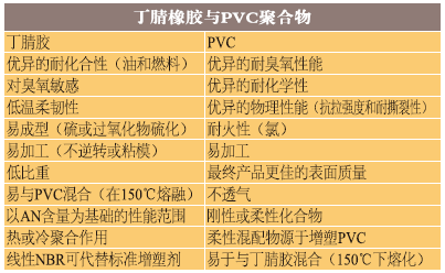 表1、NBR和PVC性能特点