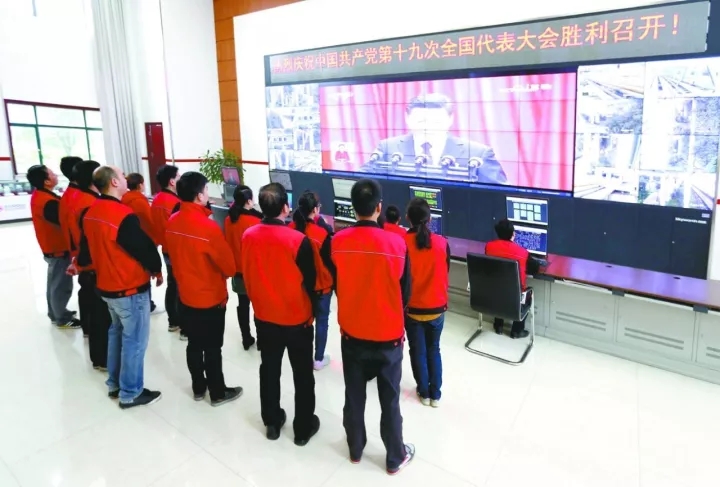 从行政机关到基层,从加工厂到生产车间、到队组,吉林石化企业在确保安全性平稳生产制造的前提条件下,机构集中化接听收看党的十九大揭幕隆重开幕。图为吉林石化有机化学厂收看当场。