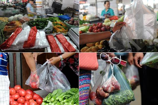 在长沙岳麓区的各地农贸批发市场,拎着塑料袋的群众经常可以看到。基本上每一个货摊上面挂着一叠塑料袋,群众要购物,商家就顺手扯下一个。