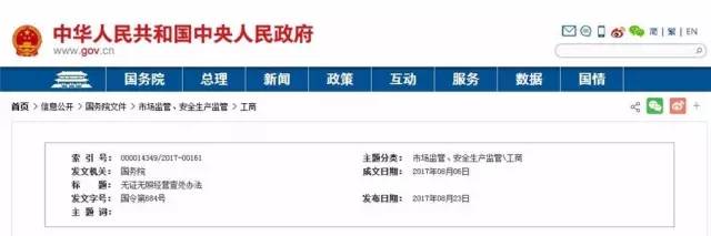 近日,国家总理李总理签定国务院令,发布《无证无照经营查处办法》,自2017年10月1日起实施。