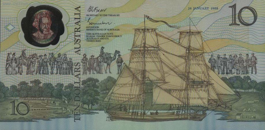 1988年,恰逢西方人迁居美洲地区的200周年纪念。因而澳大利亚政府于1988年7月26日专业发行了一张颜值10澳币的纪念钞票。这也是全世界第一张用塑料原料做的钞票。选用的是Guardian 衬底,该纪念钞票幅为155毫米×78mm。正脸图案设计是一个土著居民的人像图片,其背后打横一根代表土著居民权利的“启明星杖”,左边它是有一个抽象性的身体图案设计。反面图案设计是停靠在悉尼湾的“萨罗萨莱斯”号游艇和身穿民族服饰的加拿大各中华民族角色。加拿大发行的这枚纪念钞不但印刷十分的精致,并且选用了全新的技术性,也就是特种工艺塑料。加拿大纪念钞还应用了许多新的防伪标识技术性。例如,钞票的正反面关键图案设计均选用凹印,其上角的詹姆士・桑德斯像还选用了电子光学基因变异技术性,具备衍射光栅,随大家收看视角不一样,人像图片和色调也是有不一样转变。