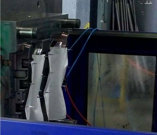 底压注塑模具关键基本原理是注塑加工工作压力较低在布上流动性,出模时要先把布挂上去前模挂针上,锁模、注塑加工、随后取货。