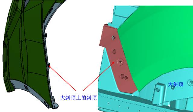 此侧脱模选用斜顶部斜导柱的构造:
