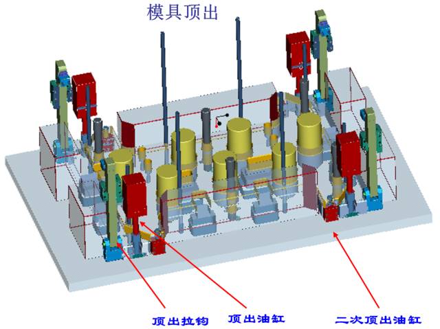 (3)第三级顶出用两个小液压缸做二次压射30MM,便捷取货。