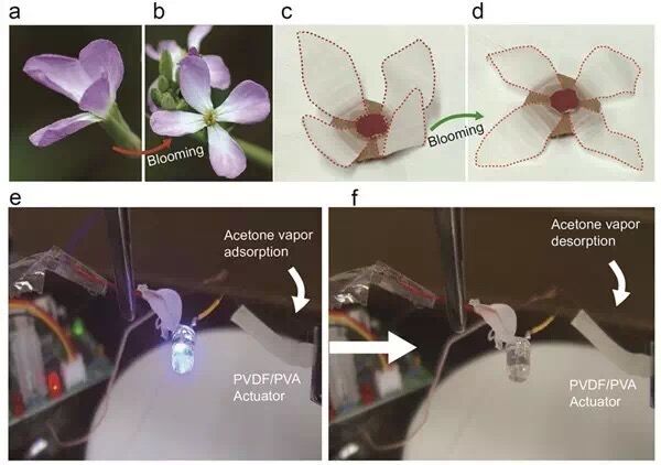 智能化薄膜定项打卷,仿真模拟花瓣运动及在有机溶剂气氛中的长久运动(自上而下)
