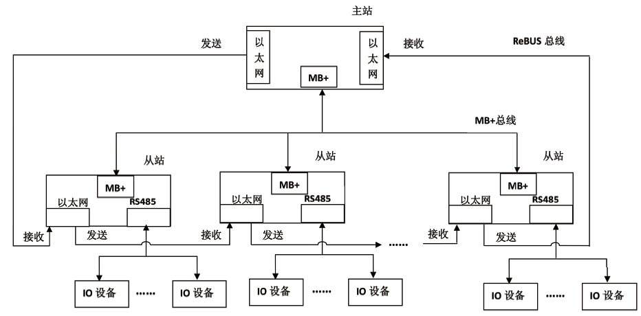 MB 网络架构选用主从关系通信方式,域名周期性地推送和读取数据,从站依据配备从报文格式特定部位载入键入数据信息,并回填土輸出数据信息,随后将报文格式传输至下一连接点,先后循环系统。当报文格式返回域名协调器时,完成了各从站及I/O的数据信息更新。