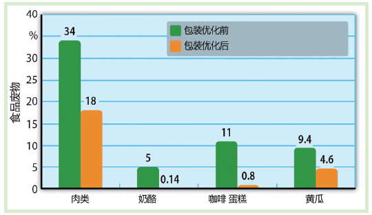 图1 相较食材生产量来讲,提升的包装可明显降低被丢掉的食材总数(来源于:denkstatt 2015)