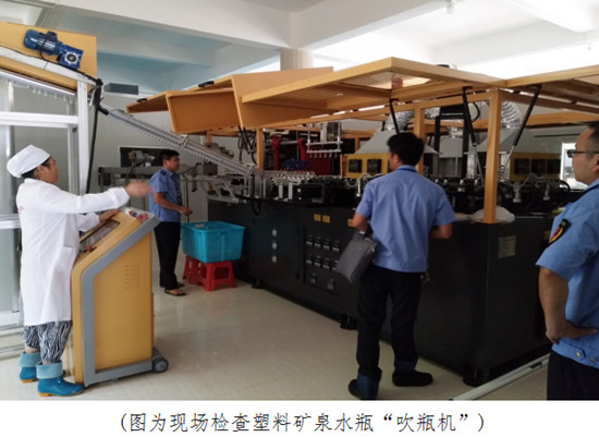 检查中,关键对用以生产制造塑料矿泉水瓶的“塑料中空吹塑机”及其生产制造用的塑料矿泉水瓶的原材料是不是归属于食品用塑料包装材料(PET)等开展检查。稽查人员根据《中华人民共和国工业产品生产许可证管理条例》的要求对企业进行了检查:一是查询了企业的生产线、生产线设备及生产流水线等运作状况;二是查看了企业有关的单据和有效证件原材料;三是对企业责任人宣传策划了生产制造食品有关相关法律法规。